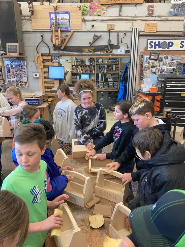 Mr. Gary's second-period woodshop class teaches students from West School each week. Mr. Gary says, " I am so proud of this class; they do an awesome job with the elementary students every Wednesday! If you need a little energy, the Woodshop is the place to be on a Wednesday morning!" The students get to build "toolboxes" and use the woodshop tools to personalize their projects. What a great collaboration!