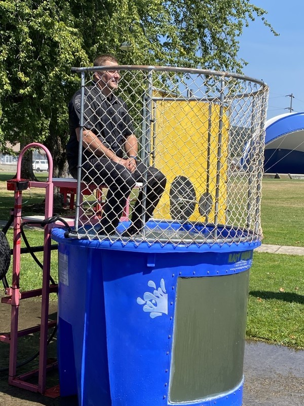 Sutherlin Police Department has created a wonderful end-of-summer tradition. The department raises money for school supplies, and then they celebrate the end of summer with an ice cream social and a dunk tank. The kids love dunking a police officer, and the Sutherlin Schools love the support and generosity. Thank you, Sutherlin PD; we appreciate you!