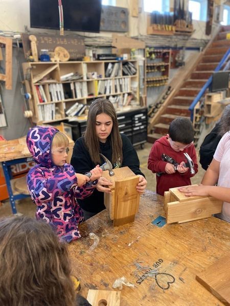 This week, East Primary's first graders walked to the high school to build birdhouses with high school students. The Song Bird Nest Box kits were donated by the Oregon Department of Fish and Wildlife. What an excellent opportunity to build skills, share learning and demonstrate cooperation. Thank you to all the staff and students who made this fun interactive field trip happen!