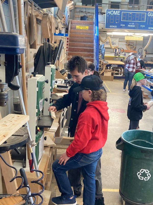 Mr. Gary's second-period woodshop class teaches students from West School each week. Mr. Gary says, " I am so proud of this class; they do an awesome job with the elementary students every Wednesday! If you need a little energy, the Woodshop is the place to be on a Wednesday morning!" The students get to build "toolboxes" and use the woodshop tools to personalize their projects. What a great collaboration!